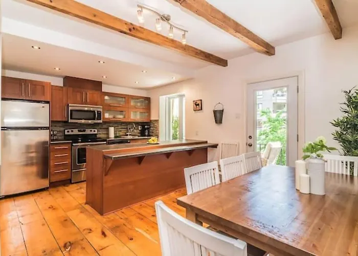 Appartement North House - Mtl Artist Loft - Champs est équipé d'équipements indépendants tels qu'une cafétière/théière électrique, un réfrigérateur et un four, offrant aux clients la possibilité de préparer leurs propres repas. La station de métro la plus proche de cette propriété Appartement North House - Mtl Artist Loft - Champs est la station de métro Champ-de-Mars située à 500 mètres.